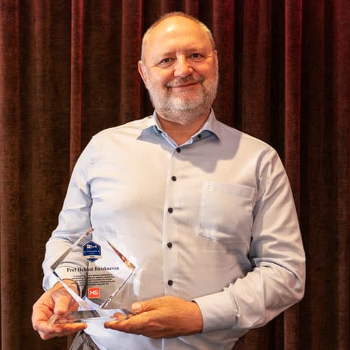 2025 MS Australia recipients are Professor Bruce Taylor and Professor Helmut Butzkueven, co-recipients of the MS Research Award, MS Nurse and advocate Belinda Bardsley, recipient of the MS Advocacy Award, and the Miles family (Jess, Jan and Glenn), recipients of the John Studdy Award.